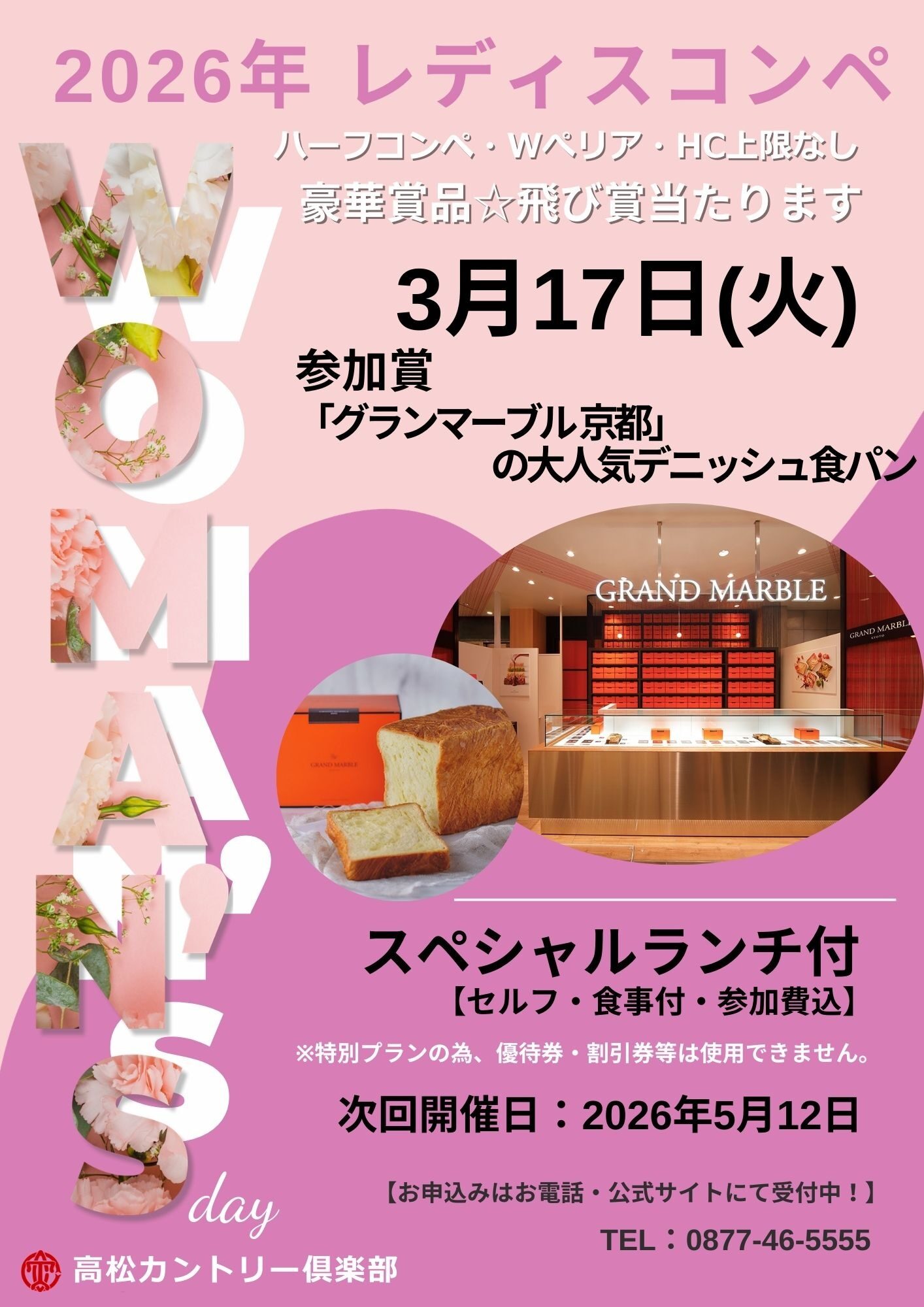 参加者限定特別レディスランチ付きでお得がいっぱいのコンペです!