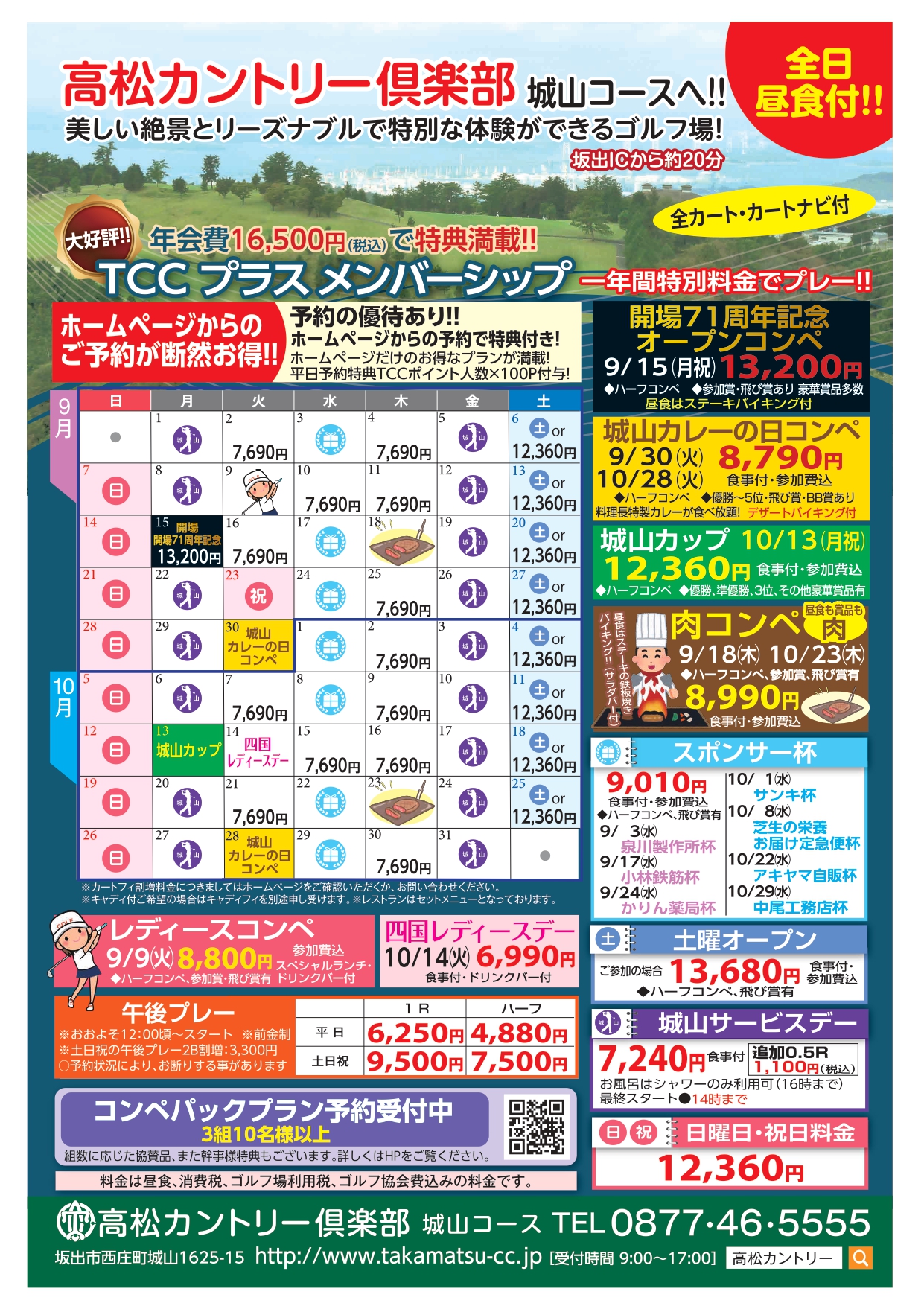 平日 2,750円(V)  土日祝 3,300円(V)  平日・土日祝 2,200円(M) 城山サービスデー  550円⇒1,100円 ※2025年7月1日より価格改定